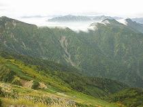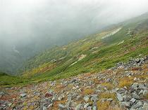 [ 鹿島槍北峰より眺める北アの稜線 ] -----------------------------------◆◆◆---------- 再び、南峰に戻ると、背中に山頂標識を背負ったかたが下りてきた。 鹿島槍北峰の標識を付け替えるようだ。あとで聞いたら、私達4人の 後に北峰に到着した、Y課長は無理やりツルハシを貸してもらい、 自分で標識を立てているやらせ写真を撮ってもらったようだ。 無理言っちゃダメですよ!!(^^) ![]() [ 鹿島槍北峰に立つ標識が運ばれていく ] ※バックは鹿島槍北峰 ----------◆◆◆----------------------------------- 鹿島槍と布引山の途中で、ようやく今日会う予定だった、うちの 会社の人たちとすれ違った。「あれ?一人足りない???」そう、 Aさんは足を痛め、テントで休んでいた。あとで、テン場の脇を 通った時にテントを訪ねたが、ちょっと元気がなく「まずいところ を見られたー!!」としきりに悔しがってた。 -----------------------------------◆◆◆---------- ![]() [ 牛首尾根方面 ] ----------◆◆◆----------------------------------- 小屋の自炊室に置かせてもらった荷物を再び背負い、爺ヶ岳〜 種池へと向う。ガスが増え気温がいっきに下がってきた。種池まで の稜線の北斜面は紅葉が見頃になっていた。爺ヶ岳の中峰は、 縦走路からはずれていて、冷池のほうからくると気付かないで通り すぎてしまうところだった。 -----------------------------------◆◆◆---------- ![]() [ 山肌も色づき秋の装い ] ----------◆◆◆----------------------------------- 爺ヶ岳南峰から種池山荘まで一気に下るが、なかなか小屋の姿 が見えない。ガスっていたので、見落としたかと心配になるころ いきなり小屋が現れた。ここも自炊組は少なく、生ビールもあって 快適快適。この日も布団も3人で2組程度だった。 -----------------------------------◆◆◆---------- 次のページへ |