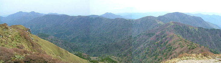 [ 剣山頂から次郎笈方面 中央右よりに三嶺がうっすら見える ]
