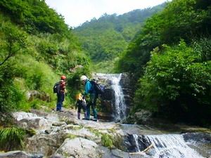 | ◆◆ アプローチ ◆◆ 稜線に出るまで天気がもてばいいなと思いつつ、湯檜曽駅で仮眠する。 今回は、沢組のほか、岩とハイキングのパーティーも含めての集中登山 となった。 ------------------------------------------◆◆◆--------- 温泉まで入った。湯テルメへの道をわけ、車道の一番奥の広場に車を置く。 ここには公衆トイレもあった。沢の身支度を整え、もと来た車道を戻り、 ペンションちっくな洋風の建物の庭先から入渓点の二股へ向かう。 この入り口は小さな看板が立ってるだけだから分かりにくい。 と思ったら、早速間違えてくれた人がいた・・・。 ------------------------------------------◆◆◆--------- 来ないよー」の声。最後尾を歩いていたおかちんが、駐車場から数十m のところで、即遭難・・・(ーー;)。谷川温泉近辺を捜索するも行方不明の まま。とりあえず、他にも道があるようなので、そちらのコースと二手に 分かれ、おかちん探し。結局、両方の道が合流するところまで来ても おかちんは見つからないので入渓点まで行ってみて、そこにいなかっ たら引き返すことにして出発。 ------------------------------------------◆◆◆--------- の姿を発見。これで、無事遡行開始することができた。えがったえがった。 |