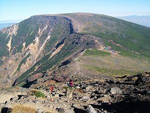 硫黄岳山荘までの下り(正面には硫黄岳) 硫黄岳への登り