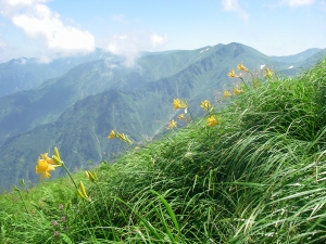 梶川尾根分岐あたりはキスゲがたくさん 胎内山。門内小屋まであとひといき
