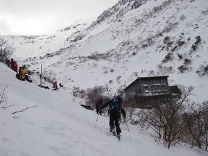 | 行程 | 2/2 | あだたら高原スキー場=ゴンドラ山頂駅12:00〜安達太良山頂13:40/14:00〜くろがね小屋15:00(泊) |