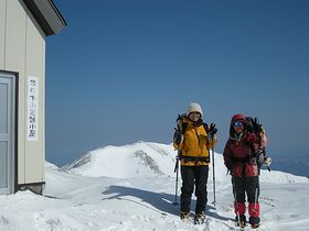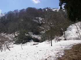 4/25 頼母木小屋08:15〜頼母木山08:35〜西俣ノ峰10:45〜大曲り分岐11:40〜 西俣尾根取付12:05〜梅花皮荘12:30 4時過ぎから、いつも早起きのいちごちゃんが活動開始。 「ご来光見に行くぞ!」 でも女性陣は寝袋から出られません〜。写真頼む・・・・ZZZzzzz 私は小屋前に出て写真を撮るのがやっと。いちごちゃん1人で頼母木山へ。 強風のため、雨具の下にダウンを着込んでもかなり寒かったそうな。 ということで、いちごちゃんが撮ってきてくれた朝の風景をどうぞ〜。 ---------------------------------◇◆◇-------------- ブルブル震えるいちごちゃんが頼母木山頂往復から帰ってきた。 小屋の中も、寒くてカップの中の水も凍るくらいだけど、外に比べればかなりマシ だそうな。 カップの水も凍ってます 小屋の中の神棚?今回初めて気がつきました。 ------------◇◆◇----------------------------------- のんびり朝ごはんを食べて出発。雲ひとつ無い良い天気です。 さわやかな朝の風景。お泊り山行ならではの贅沢な喜びです。 頼母木山からの下りのことを考えて、小屋からアイゼンをつけて歩き始めます。 バックは鉾立峰〜えぶり方面 信号機カラートリオで記念撮影 ------------◇◆◇----------------------------------- 山頂からわずかに下ると「頼母木平」の看板があった。西俣尾根への取り付き や大曲り分岐についてた看板と同じ種類のよう。 帰り道の尾根も丸見えです この大きなダケカンバの下で、今日1番の登山者とすれちがいました 誰かのデポ品 来たほうを振り返る えぶり方面をバックに 行きは巻いた枯松峰の山頂を踏んでからぐんぐん下ります 飯豊本山方面 西俣ノ峰周辺から、歩いてきた尾根を振り返る ![]() 西俣ノ峰周辺から天狗平への林道を望む 車道の除雪作業の様子 ------------------------------------◇◆◇----------- 西俣ノ峰から、ぐんぐん下り、段々下界が近づいてくる。 降りるのがもったいないね〜と言いながら、ダブルストックでぐんぐん下る。 雪があるうちは急な下りも、膝が痛くならないで済むけれど、大曲り分岐 の標識の下からは、地面も現れ、急な登山道に膝が痛み出す。 ヨイショヨイショ 尾根の下部には春の花が咲いていました 取り付き部にあった標識 取り付き部(真ん中の沢の右手から取り付いた) 下山すると、出発時には無かった鯉のぼりが気持ち良さそうに空を泳いでいた いい季節になったなぁ〜。GWにはどのくらいの登山者が飯豊に入るのかな。 どうか穏やかな天候になり、たくさんの方が「飯豊はいいでぇ〜」と楽しい 思い出を胸に、無事下山しますように。 ----------◇◆◇------------------------------------- |